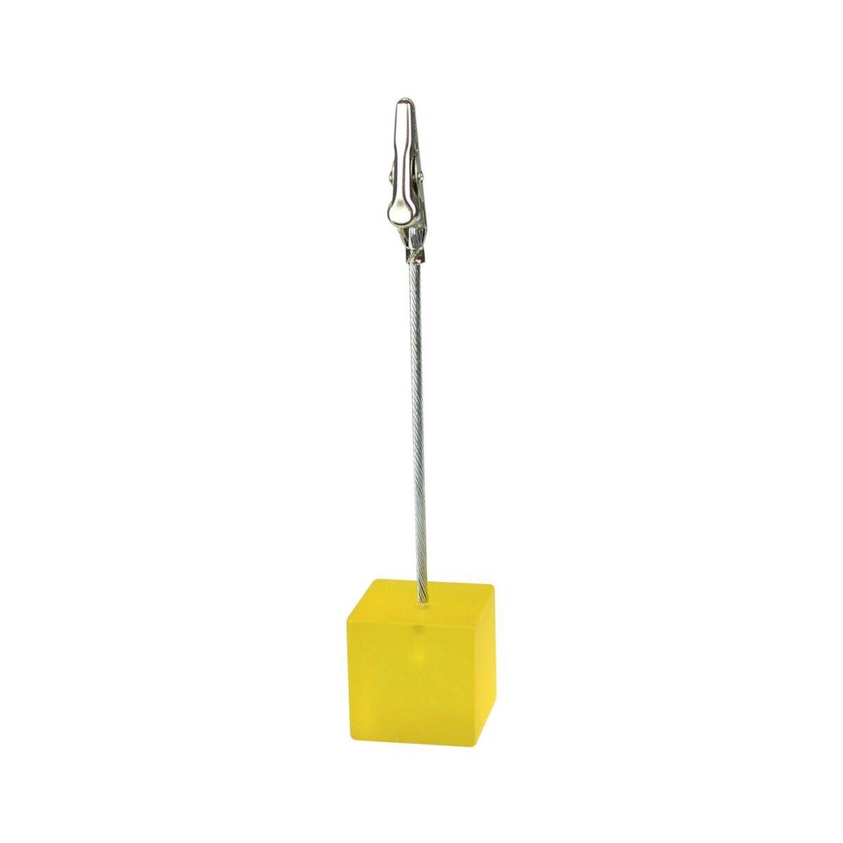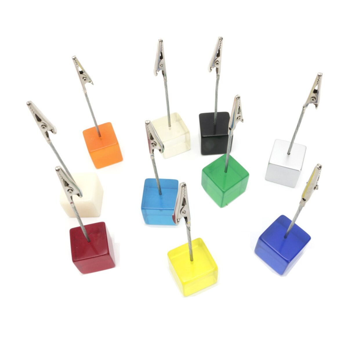 Elevate your workspace with this stylish desktop file folder featuring a cube base and sleek alligator clips made of resin and stainless steel. The flexible cord design keeps notes and reminders organized in the air, while the bulldog clip securely holds important documents in place. Ideal for office settings, this folder provides easy access to pictures, documents, notes, and phone messages. Perfect for displaying business cards, table numbers, and price cards in shops, boutiques, restaurant. 15/16″ L x 15/16″ W x 4 9/16″ H